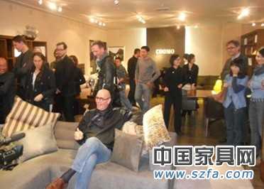 意大利著名设计师罗伯特•拉泽罗尼体验楷模家具后竖起大拇指
