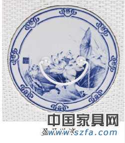 新款【观唐】花园户外家具青花瓷-婉 编藤瓷片镶嵌 休闲餐桌藤椅