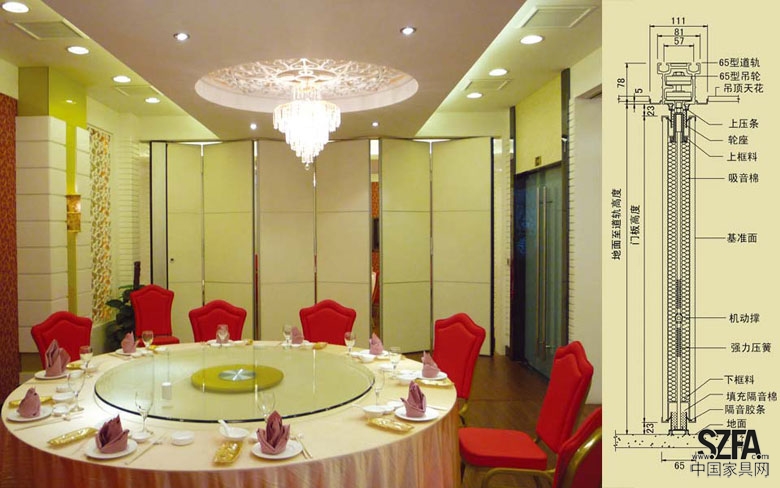 活动隔断具有高隔音,防火,可移动,操作简单等特点.极为适合星级酒店宴会厅,高档酒楼包间,高级写字楼会议室等场所进行空间间隔的使用。