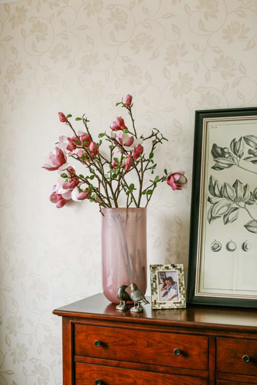 在基调沉稳的餐厅以及卧室中,色彩鲜艳的仿真绿植及黄色、绿色小鸟摆件,缓和了美式家具的“浓妆”,为空间融入些许海洋、自然原野的风味,更添趣味性。