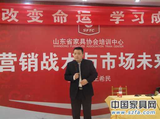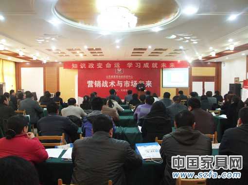 2月19-20日,山东省家具协会协培训中心2011年第一期培训班在济南举行,共有来自全省26家企业的82位相关人员参加了培训。本次培训由山东家协培训中心首席讲师王希民主讲,主题为“营销战术与市场未来”。