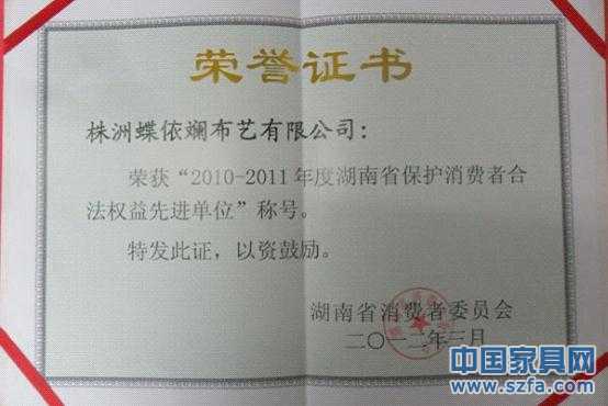 蝶依斓荣获2010—2011年度湖南省保护消费者合法权益先进单位