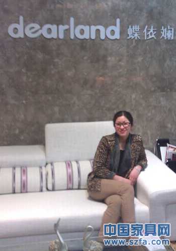 2012年春季广东家具展,广州、深圳、东莞、顺德四地四大展馆各自定位,人气也都相当旺盛。我们的特约记者马不停蹄,四处奔走采访。3月19日,记者来到蝶依斓沙发龙江2000平米展厅,看到的依然是人山人海的场面,大家都在忙着挑选产品,记者好不容易邂逅一位美女,也就是我们合肥蝶依斓沙发加盟店总经理彭年华,并愿意接受我们的采访。