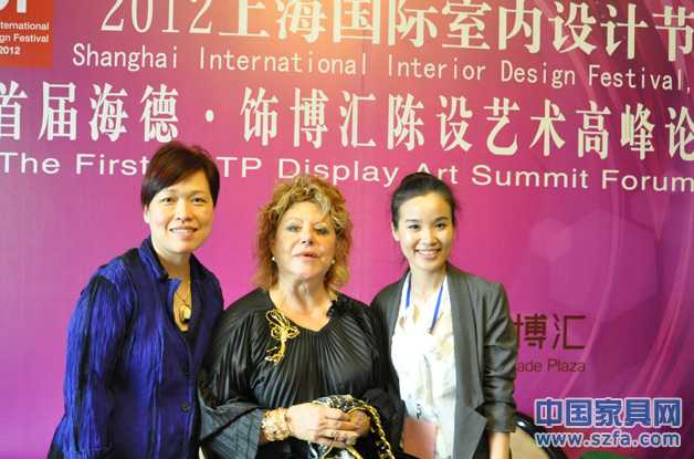 西班牙著名设计师Maria·Jose女士(中)与主办方负责人Lisa(右)合影留念