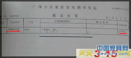 (广州质检院的检测报告显示“甲醛超标” 供图:邱小姐)