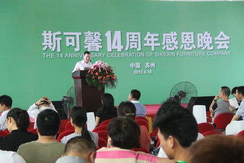 6月18日,“斯可馨感恩十四周年”系列庆典活动在斯可馨苏州基地隆重举行,斯可馨家具领导、各大基地相关负责人及华东基地员工、优秀经销商代表、业内媒体代表逾千人参加了此次活动,共同见证斯可馨的成长,欢庆斯可馨十四周年生日。
