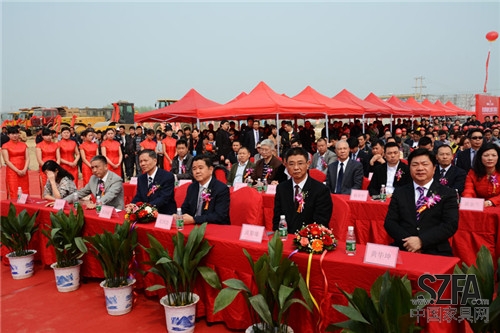 宿州市市长史翔,市委常委、宣传部部长何志中,副市长邵郁,市政协副主席何平,高新区管委会党工委书记、副主任祖钧公,市局相关部门领导,深圳出入境边防检查总站副总站长、深圳市政协委员黄黎雄,luck18在线客服会长、深圳市左右家私有限公司董事长黄华坤,luck18在线客服执行会长、深圳市仁豪家具发展有限公司董事长尤国忠,luck18在线客服荣誉主席、香港兴利集团执行董事黄伟业,luck18在线客服秘书长洪小惠,中国家具销售商联合会名誉会长、苏州市亚博家艺有限公司董事长杨亚中,中国家具协会副理事长、安徽省家具协会理事长、宿州海鹏家居产业投资有限公司董事赵卓华出席奠基仪式。除此之外,出席奠基仪式的还有深圳家居企业深圳兴利集团、圆方圆、仁豪、德胜家私、森堡家私、七彩人生的企业家,及左右家私来自30多个地市的代理商。史翔、黄华坤、赵卓华等分别热情致辞,市长史翔宣布开工并挥锹奠基。