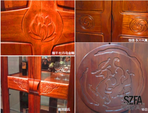 本届展会许多老牌劲旅及新锐品牌都推出了新中式风格的实木产品,这类产品以使用名贵木材、雕工精湛和弘扬我国传统文化著称。