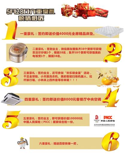 开业期间,凡购买百歌开业财神卡,5月28日10点至14点到店签约业主,均可享受以下超值六重大礼:
