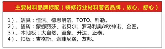 百歌全包整装不仅包得全,材料全部都是大品牌。德斯朗诺,法恩莎,蒙娜丽莎,罗马利奥,诺贝尔,大自然,圣象,海尔,格力,LG,方太。