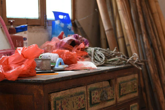 到处飞走的鸡鸭以及地上的鸡鸭粪便,客厅里摆满肥料和农具,房间里也没有多余的家具,只是一些破旧的木头家具,没有餐桌,甚至没有多余的凳子。伯父、婶婶身上都沾满泥土,应该是一上午都在田间干活,中午就和衣而睡,如果不是我们叨扰,可能马上又下下地去。