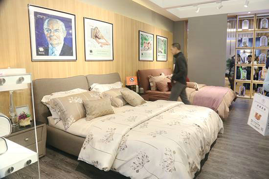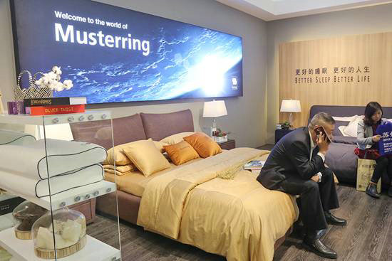 本次展位上,是德国美得丽与美国蕾丝床垫系列直播秀。