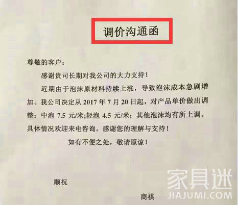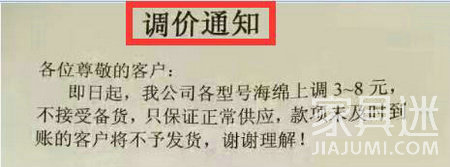 作为合成海绵的重要原料,TDI价格的上涨必然也对海绵等家居原料价格产生影响,家具成本也随之水涨船高。TDI价格上涨不久,海绵厂涨价的消息便随之刷爆了朋友圈,一些家具厂家纷纷发出备货告急。