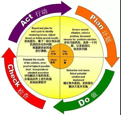 PDCA(即计划(plan)、执行(do)、检查(check)、行动(Action))是美国质量管理专家休哈特博士首先提出的,由戴明博士采纳、宣传,并获得普及,所以又称戴明环。