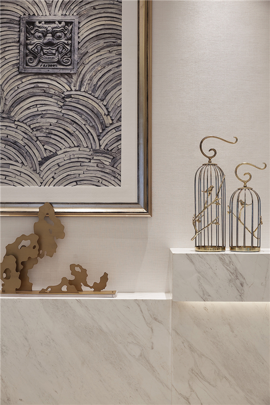 “言有尽而意无穷”,设计师以含蓄而克制的内敛表达传承经典!以挂画、地毯、摆件进行“情”“境”形塑,传递一种渊源共生,和谐共融的虚空玄阔之美,通过空间中随时变幻的自然光影,与随风而动的优雅线条,予人一种“漫步云端”之境。