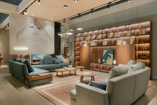 据透露,当前斯可馨大店模式主要有两种尝试:一是在主流商场里推行店中店,以1000~3000㎡的大店形式涵盖旗下各系列风格的产品,让消费者能实现一站式购齐;二是在缺乏大型主流卖场的三四线城市推行独立店,主打软体布艺沙发的同时将公司旗下的新中式产品、全屋定制业务等产品系列融合,打破以往被产品风格框定的局限,去风格化设计,满足消费者一站式采购的个性化需求。