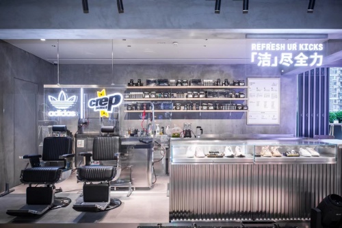 品牌中心的第三层则集合了各项提升消费体验的品牌服务,包括社区交流区、室外公共休闲区、跨界互动体验区、球鞋护理区以及健身房。社区交流区、室外公共休闲区以及互动体验区将作为运动社群和阿迪达斯会员的新据点,迎接志趣相投的消费者加入阿迪达斯大家庭,并在此深入交流。而球鞋护理区,则给球鞋爱好者提供了球鞋清洁保养服务,爱好者们可以根据自己的需求为自己的爱鞋选择相应的服务。
