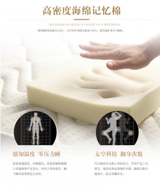 路福S301采用太空记忆棉,可通过特有的感温记忆粒子感知人体体温,提供舒适的支撑硬度;同时能够感知,记忆人体曲线,依照人体起伏完美塑型,服帖保护颈、腰、臀、腿部的自然弯曲。