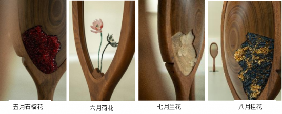 “洄游”中的每一个花卉元素都在诉说着不同的故事,桃花的设计采用了具有柔和曲线的造型,配以细腻的纹理,象征春天的复苏与生命的希望。从梅花的坚韧到荷花的优雅,每一种花卉都蕴含着特定的文化内涵与情感共鸣。