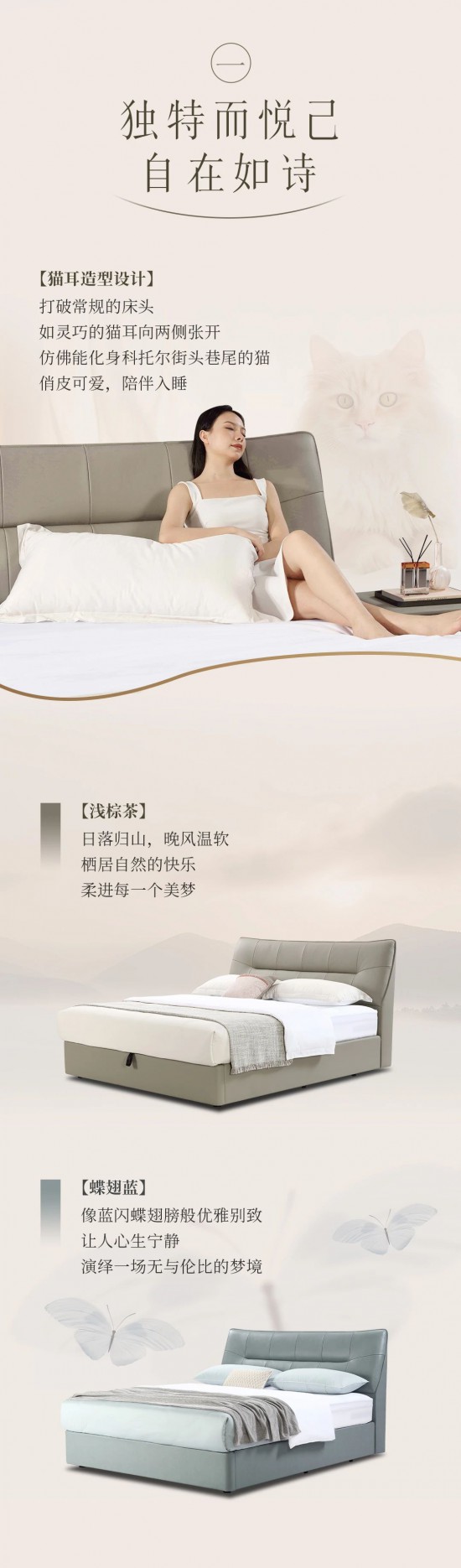 核心提示:打破常规的床头,如灵巧的猫耳向两侧张开,仿佛能化身科托尔街头巷尾的猫俏皮可爱,陪伴入睡。