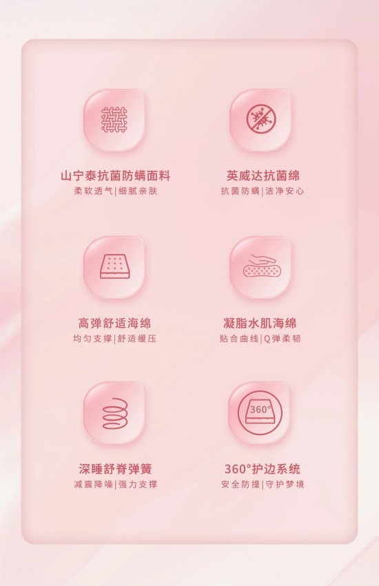 核心提示:双层绵柔力学的默契对话,Q弹柔韧,更添透气质感,晨醒时,只余松弛的慵懒印记。