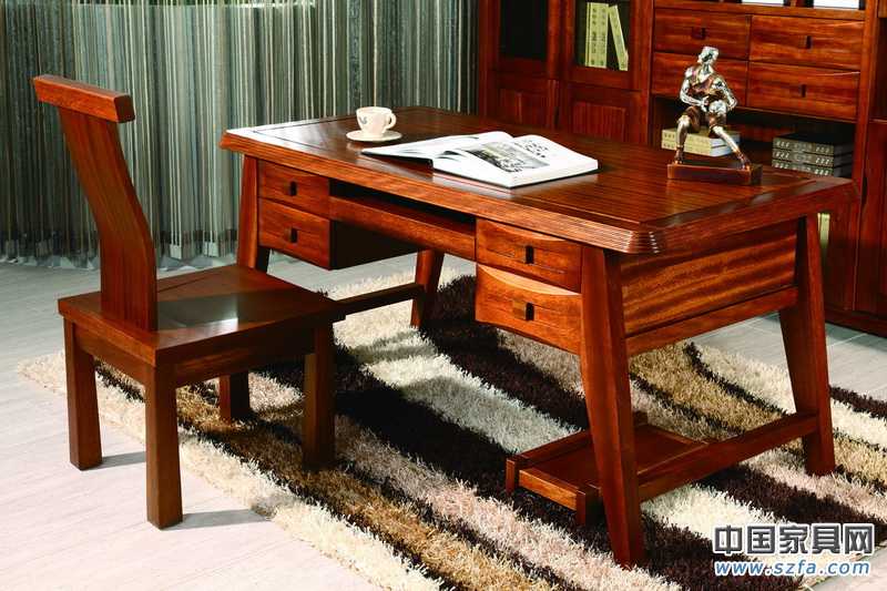 简约的书桌台色泽光润饱满,与书柜相得益彰,浑然一体。简单由两个抽屉和一个键盘抽屉组成,在书案下配有一个木脚踏,实用且休闲。书桌既可平行于书柜摆设,也可垂直摆设,与书柜形成一个读书、写字的区域,形式的多变性改变了书房的形态和风格,使人始终有一种新鲜感。与书桌配套的椅凳充分运用人体工程力学,左右扶手弧度与手臂曲线吻合,椅背也与脊背曲线相融合,凳腿微微张弛,无时无刻体现着榜样尚品以人为本的理念方针。在书桌台旁边陈设一个写字台附架,放置常看常用的知识资料,方便而雅致。精致的盆栽也是书房中不可忽略的装饰细节,在博然书轩简约大方的花架上摆放一盆绿色植物不仅让空间富有生命力,对于长时间思考的人来说,也有助于舒缓精神。让人在轻松自如的气氛中更投入地工作,更自由地休息。