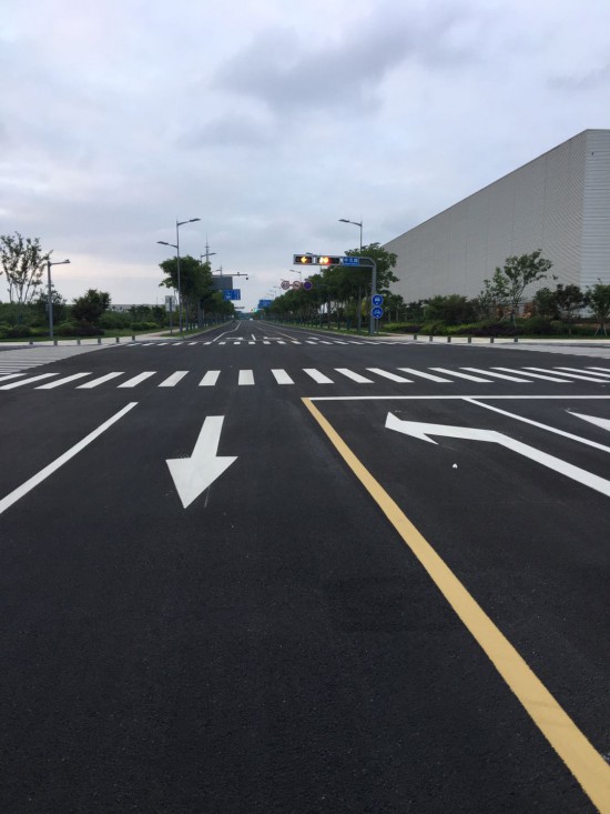 采用的热熔反光涂料是目前应用较为广泛的路用涂料之一,它是一种固体粉末型涂料,在高温熔融状态下使用专用的设备涂布在路面上。产品具有施工简易、粘接力强、耐磨性好、抗污性强、色泽亮丽、耐老化性优异等优点,并且具有良好的抗压及抗冲击强度,耐开裂性优异,适合于各类路面使用。