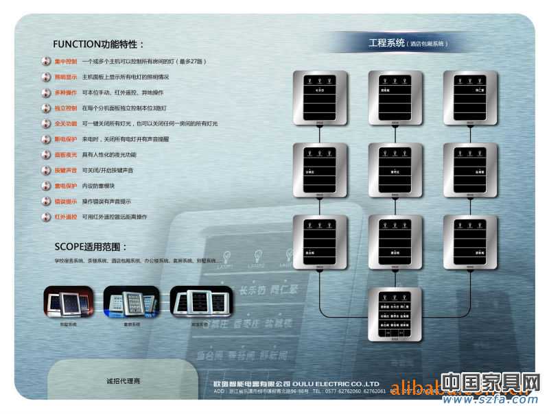 全关功能 :可一键关闭所有灯光,也可以关闭任何一房间的所有灯光