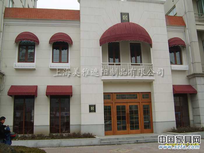按出口标准测试抗风能力达到6-7级 1500泼水压此款为开放式,整体机构及卷布轴等均暴露在外,有后方管,手臂用铝合金连接件牢固与着力在方管上,安装有配套各式的墙码,长度超过5m中间另加中托手臂,整体机构前后通,手臂都用优质铝材加厚,重要关节等零部件都采用进口装配,电动手动均可。安装适应屋檐或物体挑出25cm左右或采用成型完美的铝合金雨罩壳和配制雨盖板。其质量零维修率,适用很广,因此此款是本公司的拳头产品和品牌产品