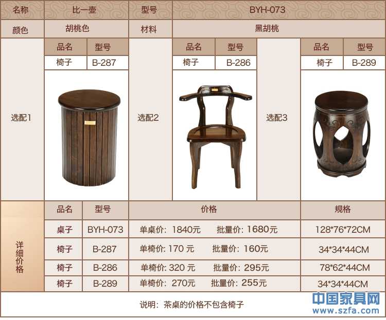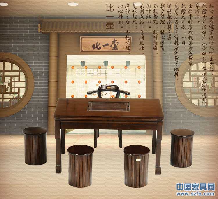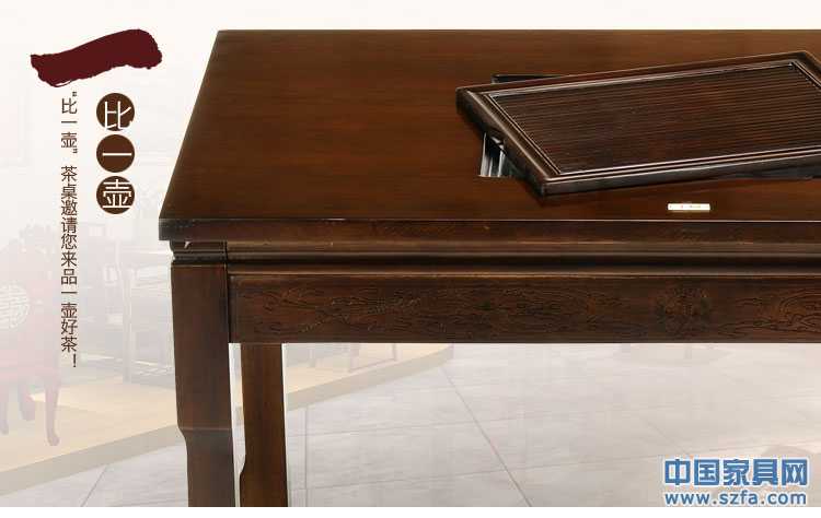 比一壶红木家具/功夫茶桌实木仿古家具黑胡桃木方形茶桌073