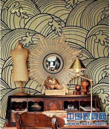 壁纸 采用古色古香的传统纹样,黑色的线描图案既相似又有变化,弥漫着典雅的贵族气息,与造型传统的写字台及座椅混搭,更增添了空间的沧桑感和厚重感,将奢华风格发挥到极致。