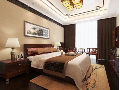 卧室朴素却不失韵味,所有家具都用最简单的造型,摒弃了繁复的配饰,方正立体的独立吊柜是亮点。两把圈椅和圆形小茶几为卧室打造了聊天区,显得温馨又舒适。