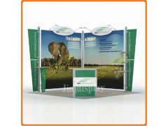 2、款式多:有各种陈列柜、展架、展桌、图文展墙、造型灯箱、形象面等;