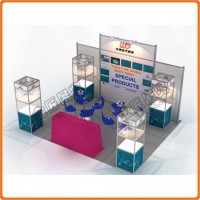 能够快速引人注目的法宝就是橱窗。它就像是一本杂志的封面,能否让人翻开杂志阅读里面的内容,就看这个封面设计的是不是足够吸引人。对于小展位,设计一个吸引人的橱窗展柜,把公司火爆的主流产品实物及图文结合的方式展现在人们面前。