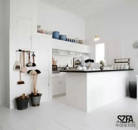 纠结厨柜那些乱七八糟的颜色,不如用回最简单的纯白色,妥妥百搭!