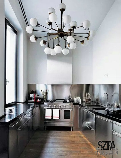 厨房风格的定位在现代设计和古典风格之间 达到了巧妙的平衡。