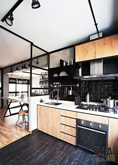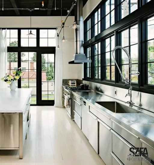 大面积的透光窗户丰富了原本空荡的厨房,让层次立显。