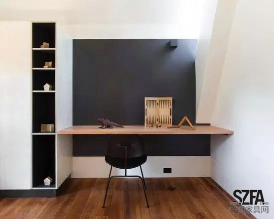 壁桌的设计是小户型的救命稻草,看这款书房是不是很像一个衣柜? 在小户型中随意隔断出2平米,巧用壁桌便可轻松打造书房。