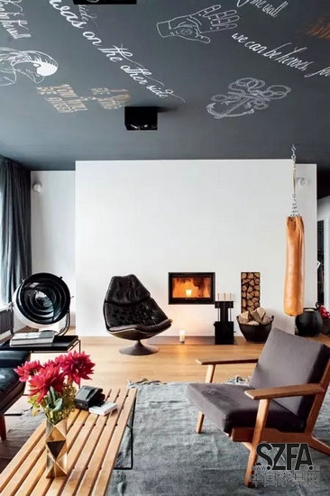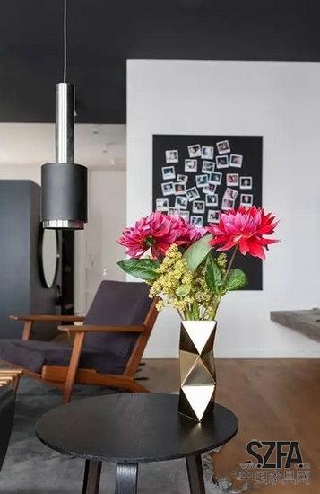 黑色、棕色、白色是起居空间的主基调。