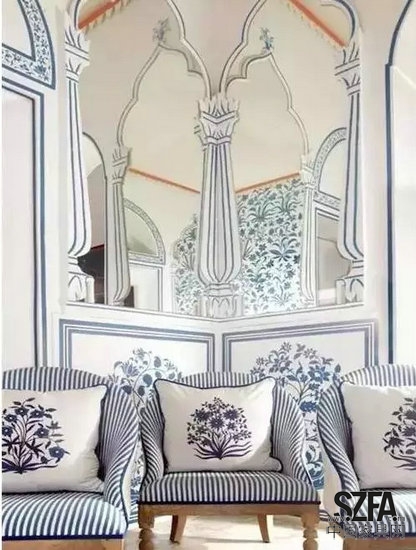 装修中很少有见到那么纯粹的伊斯兰风格家居的,比起热情洋溢的地中海风格,伊斯兰风格显然在两个极端中,清 爽的空间中,白墙加蓝色的点缀,如海水般清爽入心。