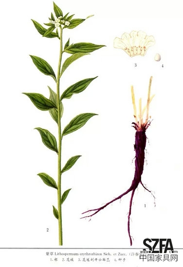 中国传统紫色染料基本只有紫草的根,制取复杂,其色素难溶于水,并且不甚稳定。宋以后紫色的染取技术逐渐提高和丰富化。