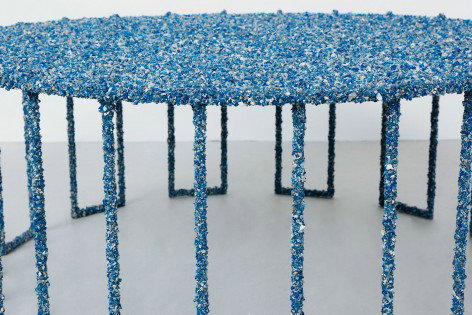 色彩各异的宝石和金属被研磨分解成细碎的颗粒,再粘贴到支撑结构和桌面之上。几何化的简洁结构和丰富的材质肌理形成了有趣的反差,凹凸不平的表面带来了明显的触感。无论单独放置,抑或多款组合,这系列家具都将成为室内空间的点睛之笔。