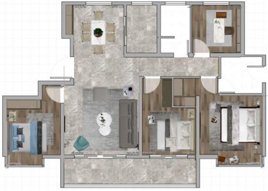 采用大面积的灰褐色欧式板,构建出和谐柔和的睡眠空间,大理石装饰,升华极简,别具风韵。