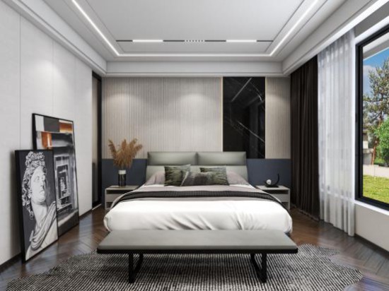 定制墙体隔断出衣帽间,满足日常生活所需,家具的装饰上,CBD家居·黑金 | HG005软床低调十足,简练的线条构型呈现优雅感,深浅不一的灰色过渡,显现色彩美学,舒缓自然,格调自成。